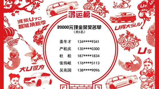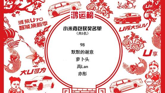 揭晓了5位2万元大奖的锦鲤