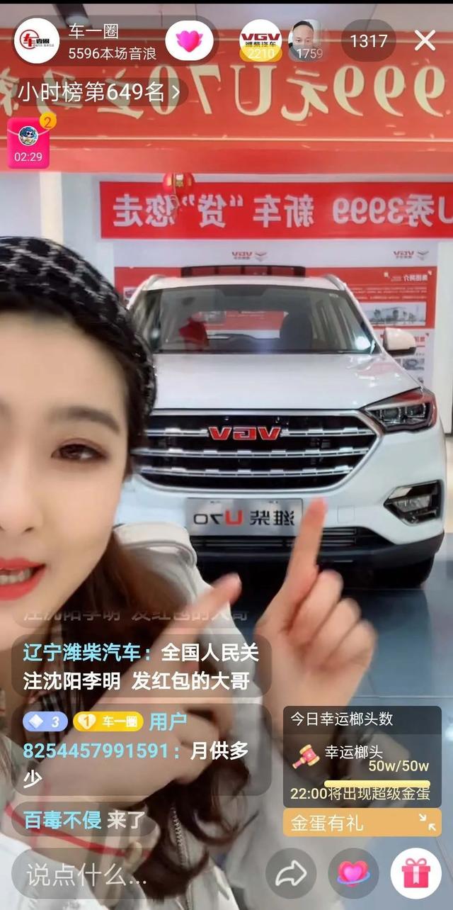 本次直播由《车壹圈•销冠说车》金牌主播小星星主持,以潍柴汽车某4S店为场景,现场把潍柴U70盘了一遍,并针对网友感兴趣的问题,进行进一步解释与说明。本次直播进行了1个小时左右,累计在线观看人数近1400人,抖音小时热度榜也跻身了前500之内,这样的关注度还是非常不错。