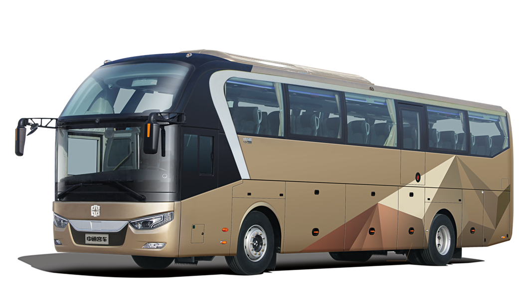 中通新世嘉系列大型双风档豪华客车整车为流线型设计,外观时尚、端庄,车高和车宽进行最优化设计,实现风阻系数最小化。全车为全承载高强钢设计,结合CAE分析,金刚封闭环结构设计,安全性行业最好。配置方面行业最高:率先开发乘用车式短杆气助力换挡系统、前后100万公里最长使用寿命的免维护车桥、前后全LED大灯等行业最高配置;内饰经专业设计,美观、高档、典雅。