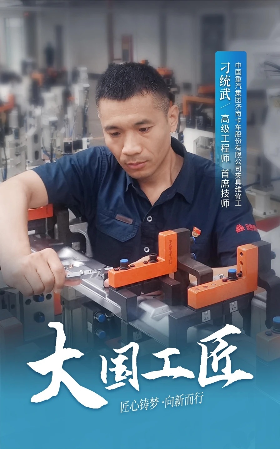 刁统武26年始终坚守一线,钻研苦练,练就了一身高超的本领,攻克了各种驾驶室焊接技术难题,一双火眼金睛能够在各类工装设计中见图识错。他运用精湛技艺,开展技术创新,全程参与了HOWO驾驶室、T7H驾驶室、T5G驾驶室、“新黄河”驾驶室和MAX驾驶室等焊装线的夹具研发焊装线建设。特别是重点参与并主持完成了代表国内最高水平、领先行业的“新黄河”智能驾驶室的研发设计、过程控制分析、生产线规划验证以及驾驶室产品验证及试制生产,为民族重卡品牌的振兴发展做出了突出贡献。曾荣获全国劳动模范、全国五一劳动奖章、全国技术能手等荣誉称号,享受国务院政府特殊津贴。