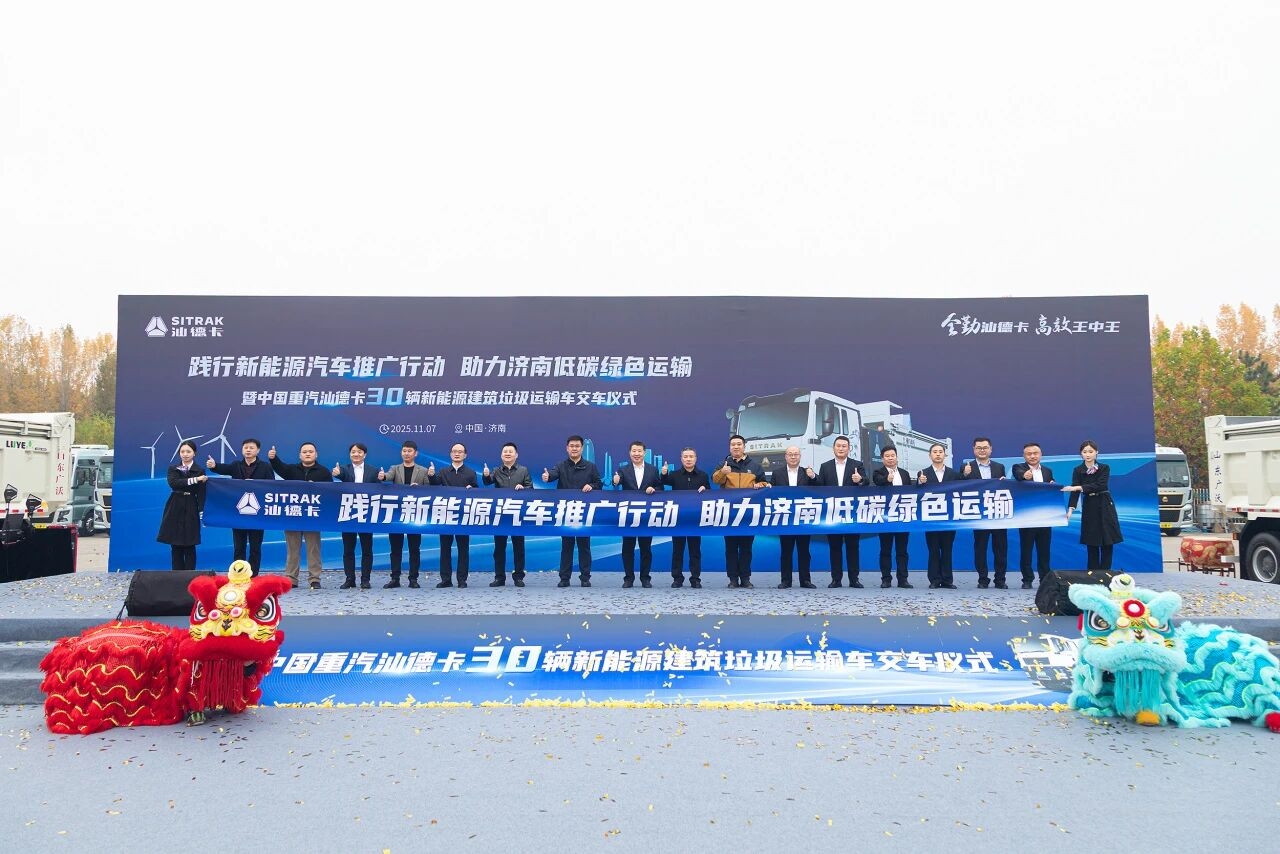 11月7日,“践行新能源汽车推广行动 助力济南低碳绿色运输暨中国重汽汕德卡30辆新能源建筑垃圾运输车交车仪式”在济南商用车制造公司隆重举行。此次交付不仅标志着中国重汽与济南盛仕达等三家企业的合作发展迈入新征程,同时为济南市绿色物流体系建设注入强劲动力。