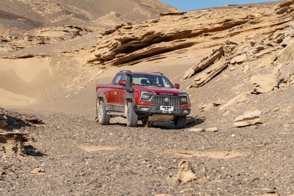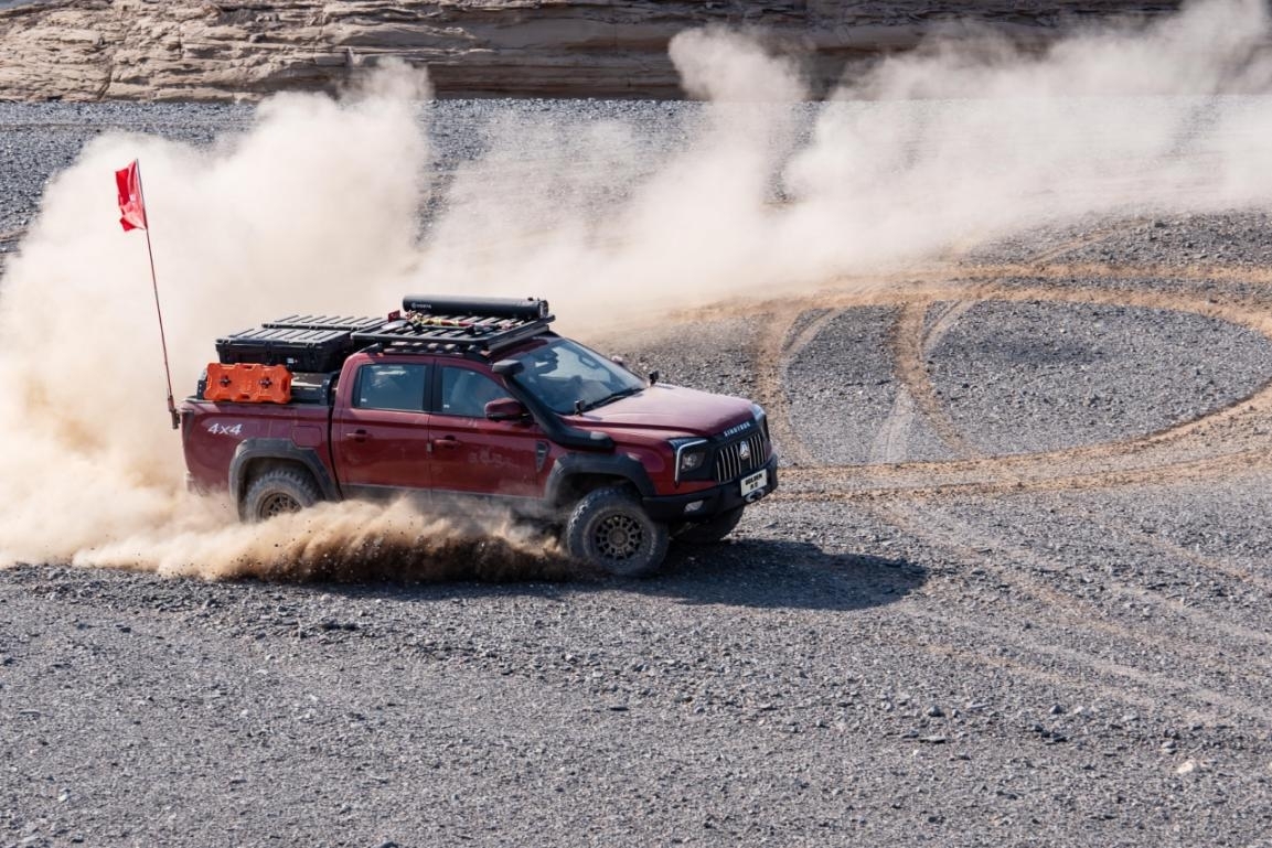 The surface of Dahaitao is mainly Gobi, with a road surface covered with gravel and uneven terrain. Driving for extended periods is a significant test for both the suspension system and tires, challenging both the vehicle and the driver. The  of the BOLDEN PICKUP is equipped with four nitrogen shock absorbers with adjustable damping of 8 levels, greatly reducing the bumpiness during driving. The modified models are fitted with large-size MT tires, easily handling prolonged poor road conditions. Even the factory-standard vehicles with AT tires performed well, with no tire bursts occurring.