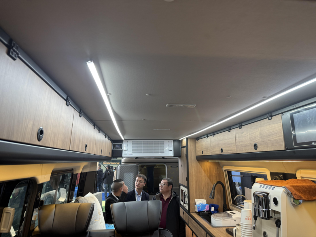 另一款旅居车由中国重汽旗下首款轻客先锋官V改装而来,以“我行我宿我自由”为核心理念。搭载潍柴2.0T柴油机+8AT黄金动力链,最大功率115kW,最大扭矩400N·m,超强动力性能,自在出行,探索更多心驰神往的远方。采用双层叠栏式电动升降硬顶设计,顶部折叠床,极大拓展车内空间,提升整体性、安全性与稳定性;配备对向卡座、厨房吧台、一体式卫生间、柴暖、电磁炉、50L车载冰箱、10L热水器、120L清水箱、40L灰水箱,并专享车载wifi、投影仪与品质音响,打造豪华旅居体验,外出亦如家舒适。不惧限高,低顶可下地库,既能旅居于郊野,也能探索城市烟火。